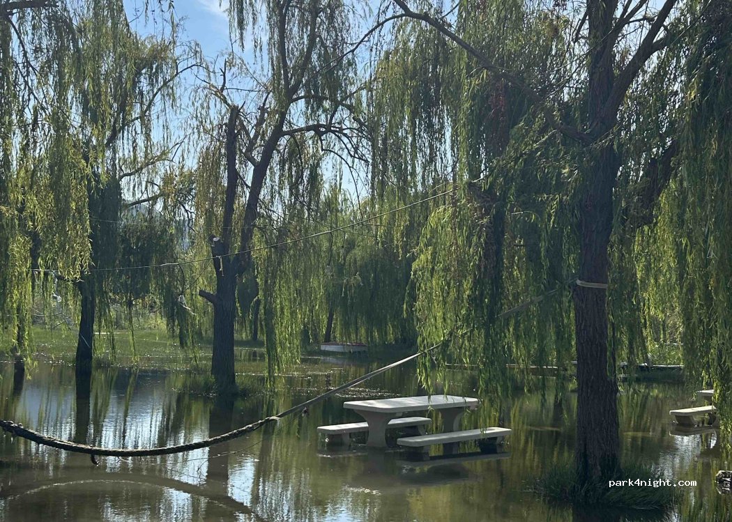 Wir haben hier den Tag verbracht, sehe gemütlich mit viel Schatten unter den Weiden. Leider ist hier Camping verboten.
