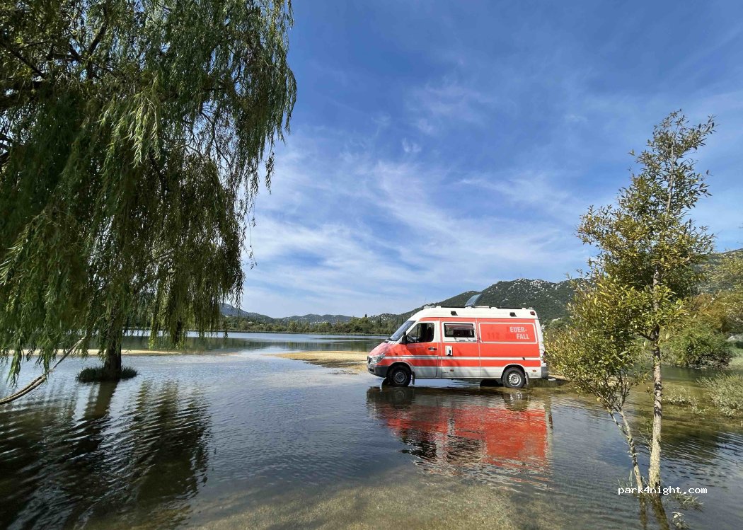its very beautiful here, but we were fined 95 Eur. the city guard was friendly but came early morning and we had to pay even it was octobre, we were the only one on the parking place on a very windy day - no bathing weather were we had disturbed anyone. may we were to visible from the houses..?