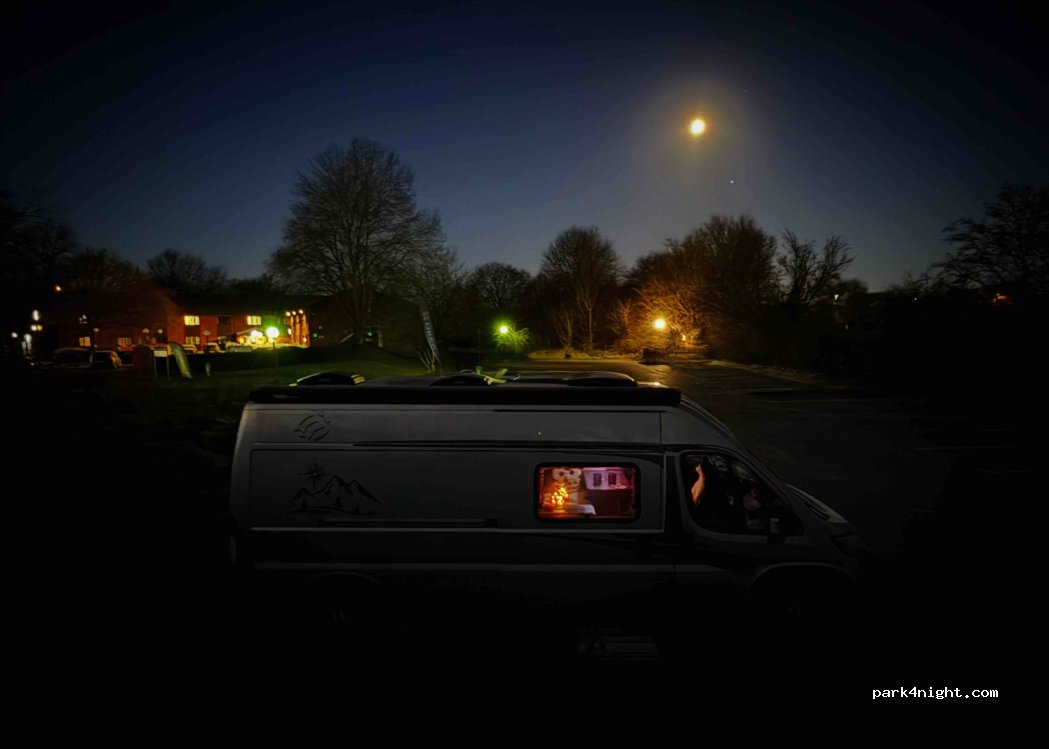 Nice little car park to the back of the services, arrived at 11pm and were plenty of spaces to use, quiet with only a few dog walkers in the morning. Services nearby are not 24hrs however.