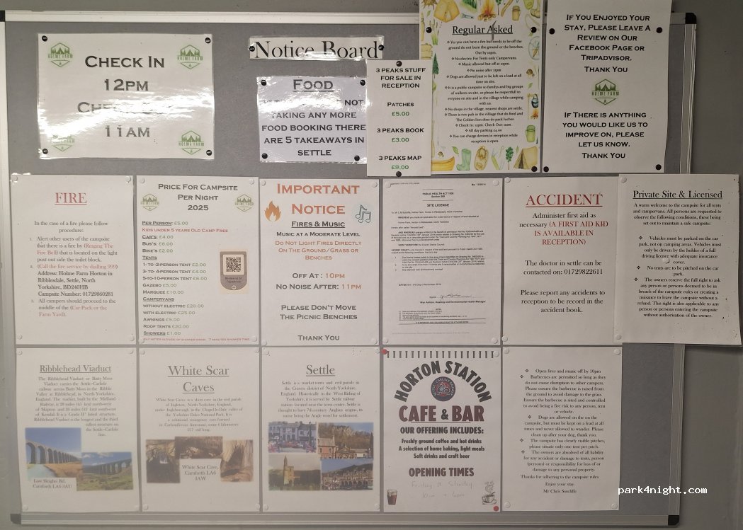 Ferme en activité, belle vue et emplacements spacieux avec bancs de pique-nique. Enregistrez-vous d'abord à la réception "the Yorkshireman" - en espèces ou par carte, mais vous devrez pouvoir utiliser vous-même la machine à cartes! A des toilettes mais pas de douche - vue imprenable sur le stylo et Gand et parfait pour la randonnée! Le lion d'or est le meilleur pour les boissons, la couronne fait de bonnes lasagnes (portions énormes) - il y a BEAUCOUP de signes de ce que vous ne pouvez pas faire, pas adapté aux chiens.