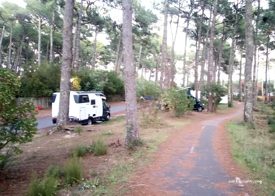 Agréable sous les pins et nuit calme. 2-3 autres campings car en octobre. Balades en forêt accessible juste à côté.