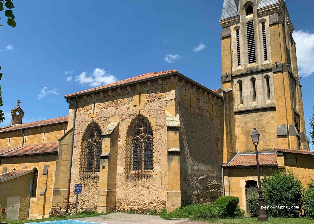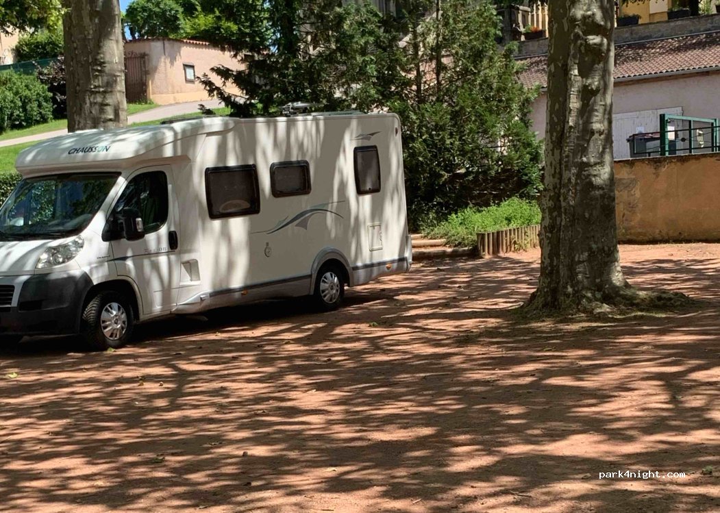 Parfait pour une pause déjeuner. Parking ombragé à côté d’un restaurant. Au calme.