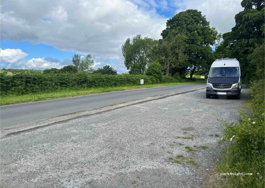 Small quiet lay-by less than a mile from National Trust ‘Brimham Rocks’. No signage whatsoever may have once been a road grit/gravel store for resurfacing country lanes. Level (ish) hard standing on very quiet lane with room for 4 vans easily.