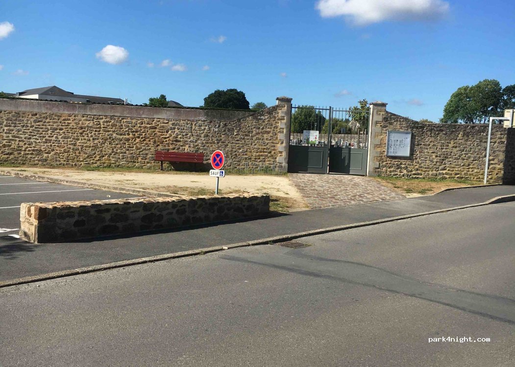 Parking à côté du cimetière assez spacieux, plat dans sa 2ème partie. Nuit très tranquille avec très peu de circulation