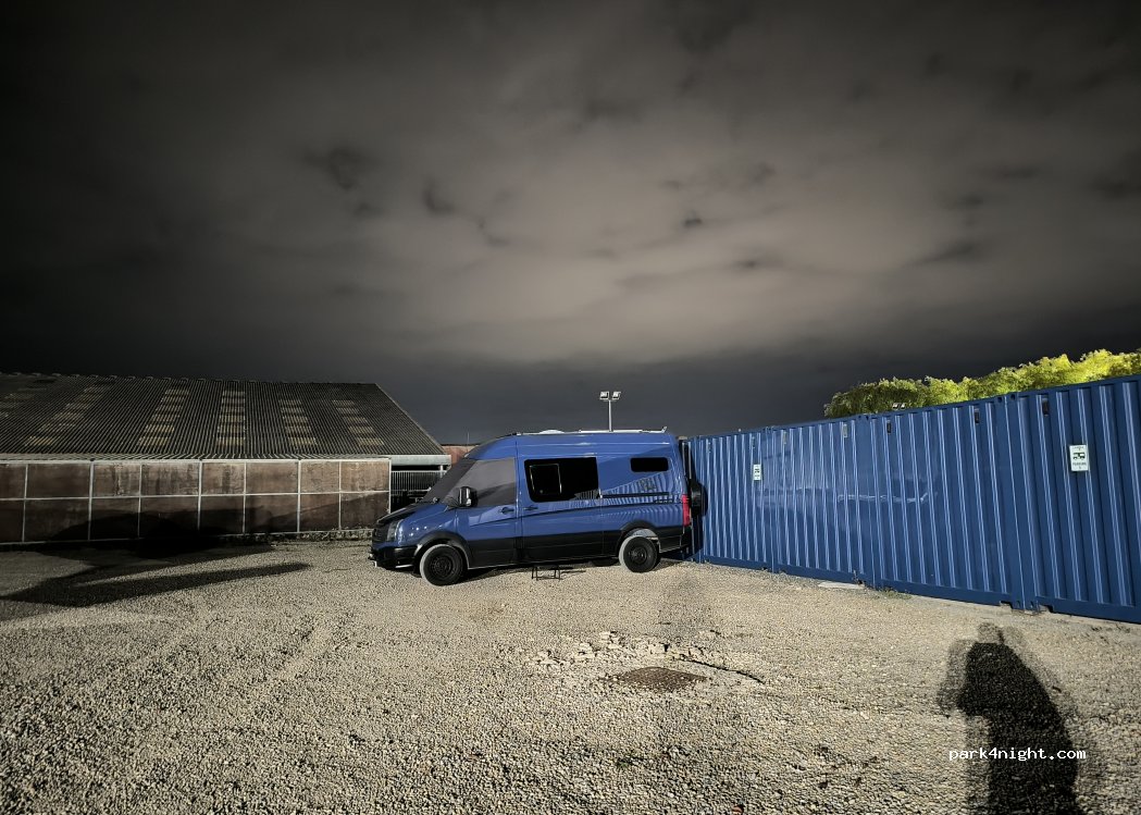 Dark by the time we arrived but security guy was in his portacabin and let us in. Nice and dark and flat. Bins, grey and drinking water and toilet disposal all for £12. Only one other van came in. Had problems exiting as gates were locked. Receipt gave us combination but couldn’t find the key safe. Phoned number at office to be told there was another gate that was open. It’s the one nearest where you are parked not the one nearest the main road. Other than that, a good spot nr park n ride.