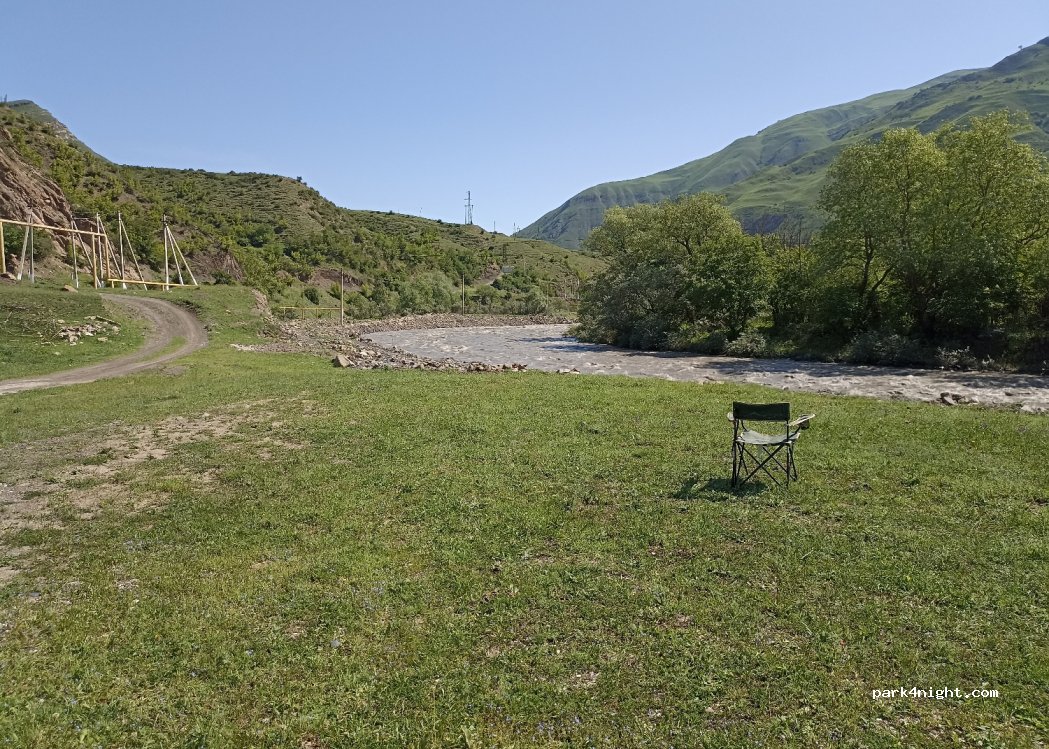 Flat land to park next to the river near the town of Itum-Kale.
