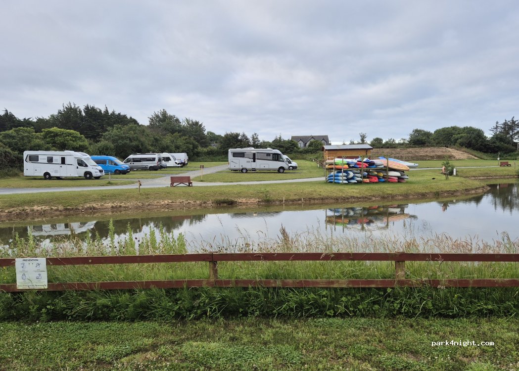 Ideal for an overnight stay before or after the ferry crossing from/to Rosslare. Approx. 5 minutes from the port. Beautiful and spacious pitches on a small lake with all facilities for 26 euros/mobile home including electricity. Very friendly welcome, reception open until 8 p.m. Possibly very busy in high season as it is an activity center.