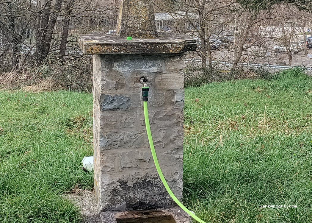 La fontaine d'eau est fonctionnelle même en cette saison, mais le débit est faible. avec un tuyau ça se remplit très doucement mais avec un peu de patience, c'est ok. Une bonne sieste en attendant et vous repartez d'attaque pour visiter le coin!
