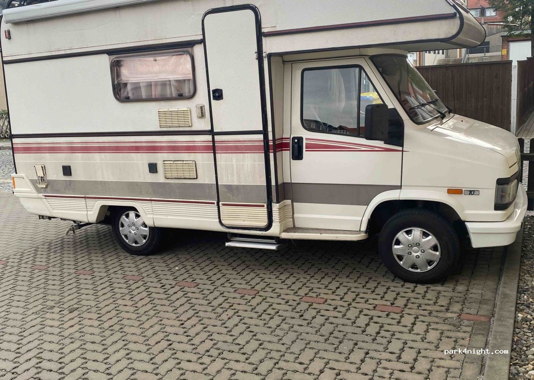 Passt hier nur ein etwas größeres WOMO - max 6,40 auf den rechten Stellplatz. Bei den anderen handelt es sich um "normale" PKW Stellplätze. Ich würde sagen, ein 5,40ger kann dort gerade noch stehen. Tatsächlich kostet das Parken von 18-8 Uhr über Nacht nur 50cent. Man ist mitten in der Stadt. Kein Übernachtungsverbot oder Camperverbot.