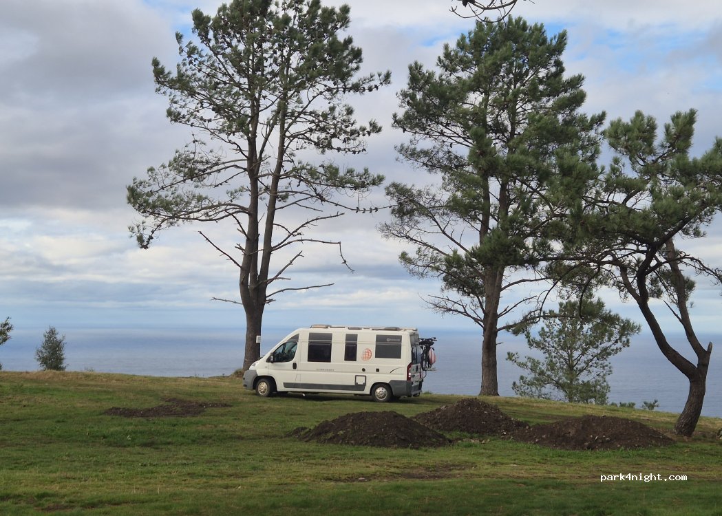 Ottima spianata su erba, vista incantevole sull'oceano, silenzio assoluto durante la notte, ci possono stare almeno 5 camper senza problemi, salita per arrivare molto dura ma fattibile su strada larga e dritta. Bidoncino per le immondizia presente.