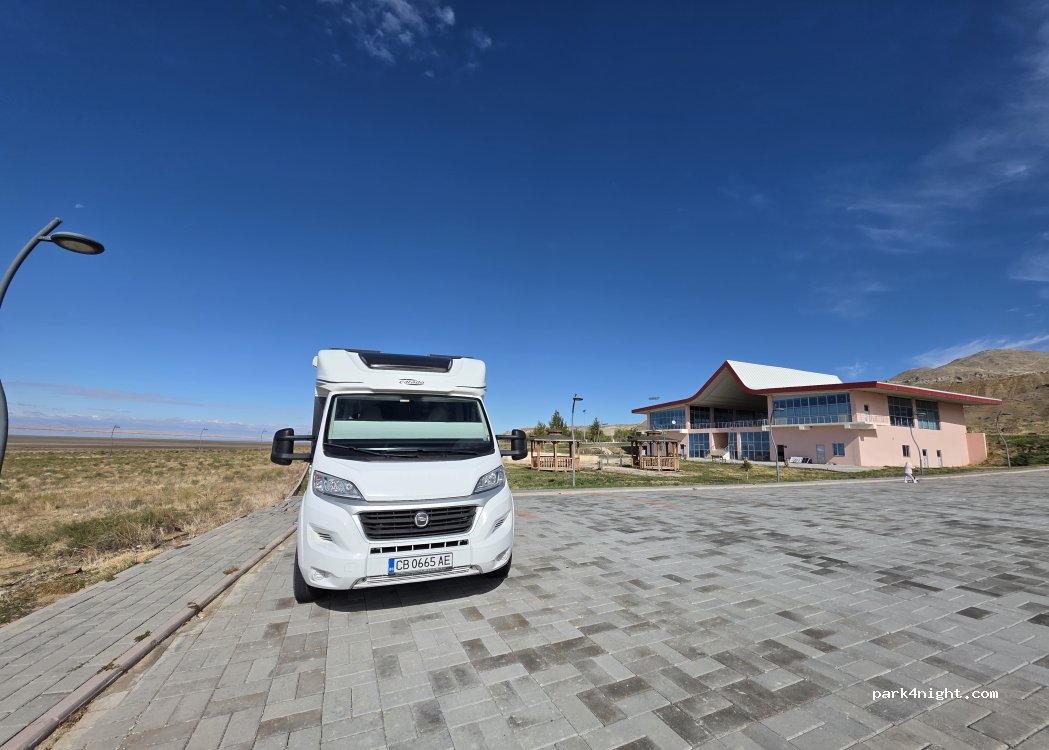 Based on what we expected from a park up. A great spot - lots of hard standing. Toilets available, a viewing platform, near the lake and is quiet at night. We got a lovely welcome from the guys working there -had Çay. They said the main building is still being finished and done in 3 months. Please take care of the lovely resident street dog. Fyi- the lake is inaccessible atm Jan ‘23, lot of snow.