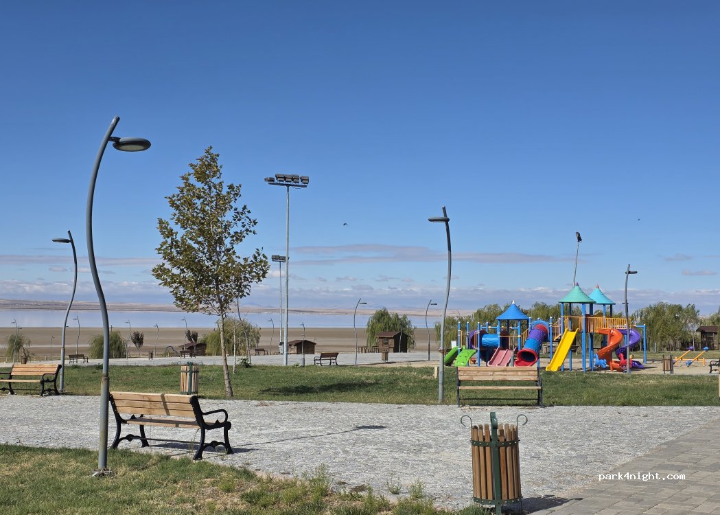 Large lighted car park with large play area, garbage cans available. Ideal location for visiting the salt lake. Calm and peaceful place.