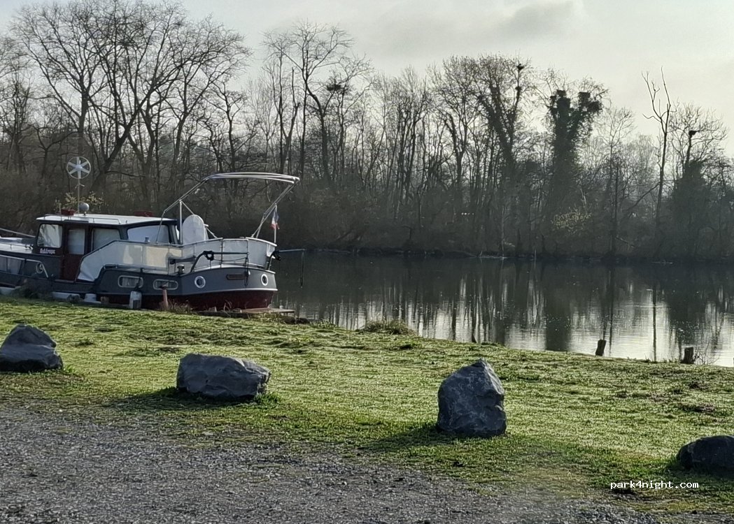 Great place to stop as long as you don’t mind geese! Camping Car Park card needed and barrier not working without calling for help (when we visited). Right on the river and good for easy walking, cycling and paddle boarding! Good boulangerie close by and small supermarket too. Saw water snake, heron, kingfisher and buzzards as well as lots and lots of geese! And only stopping one night too!
