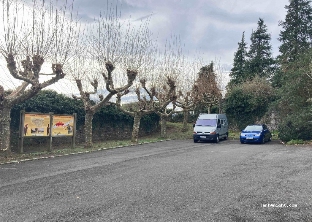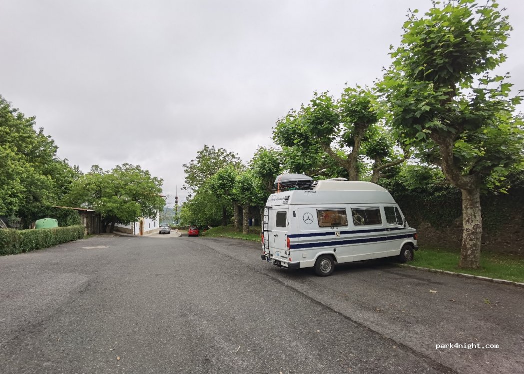 Parking calme bien qu’on entende la route. On peut se garer à peu près à plat en s’aidant de la bordure au fond. En venant d’Hernani, attention au GPS (voir photo).