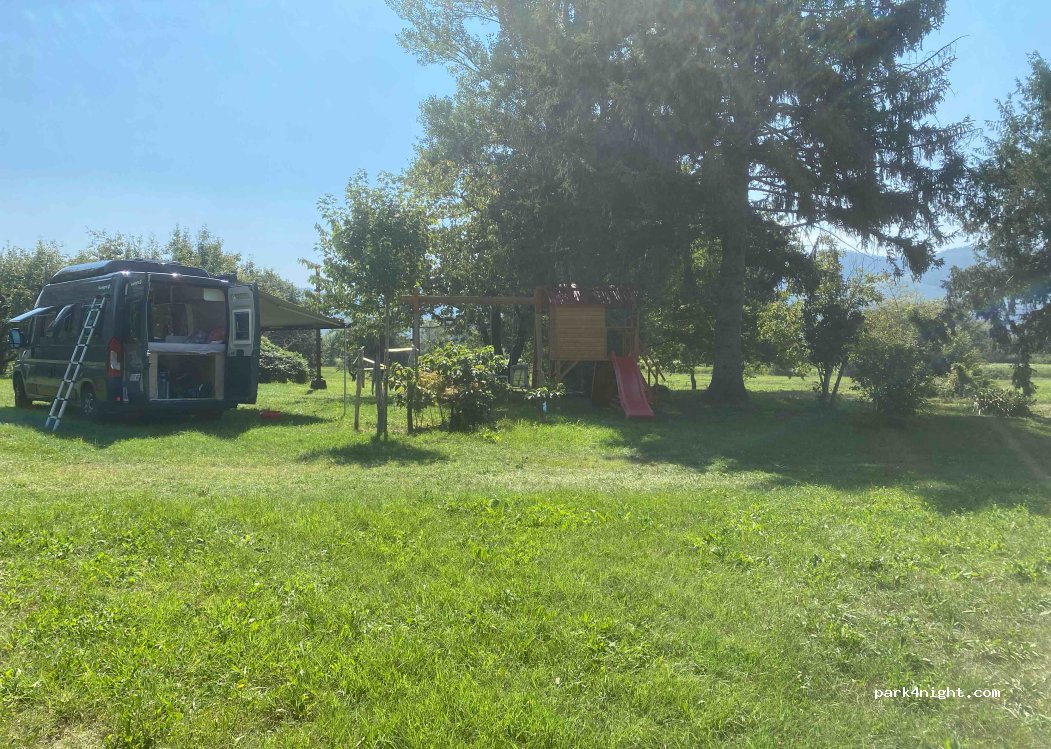 Beautiful farm, you can stay under a walnut tree or in a fruit orchard. Beautiful view with starlight and fireflies at night. The family is really nice and helpful. The outside shower is just perfect. Even if a wine tasting was not possible at the moment we got good advice for a nice short walk along fields and the river to a vinoteka. Don't miss out on this camping opportunity!