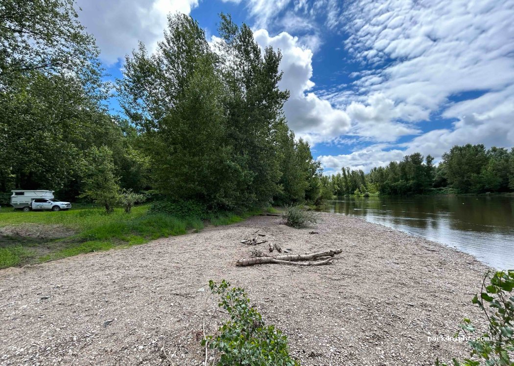 un endroit très calme nous avions la plage pour nous! quelques pêcheur sur la rive d en face et une famille est venu pique niquer un peu plus loin sur la plage mais sinon le calme absolue. la soirée et la nuit ont été sans aucun passage exepté pour les moustiques qui sont venu nous attaquer en nombre et qui ne réagisse absolument pas aux répulsifs habituels. mais sinon un petit coin de paradis.