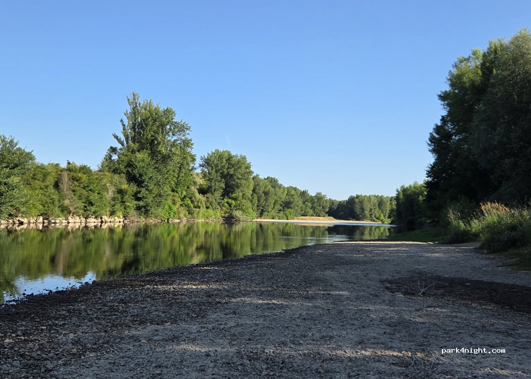 Pretty quiet spot with several possibilities for parking near the water, see for the bravest at the water's edge, 4G ok but weak, perfect swimming, at the top for dogs, no services there garbage cans, access by 6m van without problems, very quiet, for camping cars to see .. because to get there I had to go under a bridge, my van is 2.40 high and I went wide. good road
