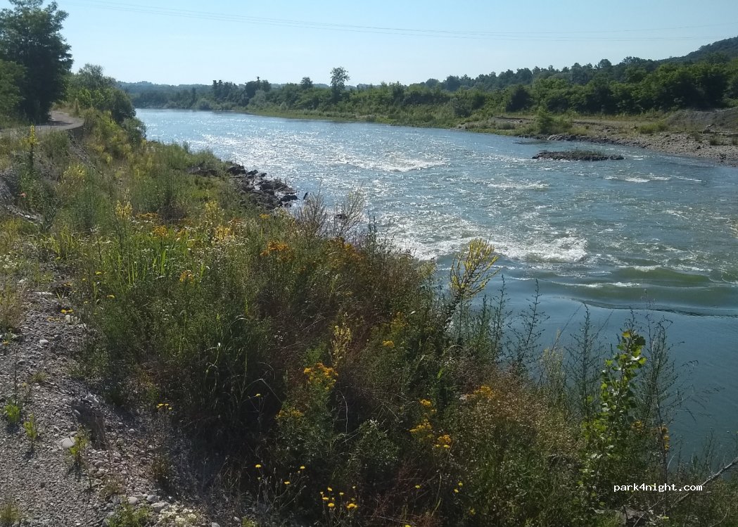 nous ne sommes pas restés, la rivière est belle, mais des déchets et pas de véritables place pour se garer, pas d'ombre, par contre chemin praticable