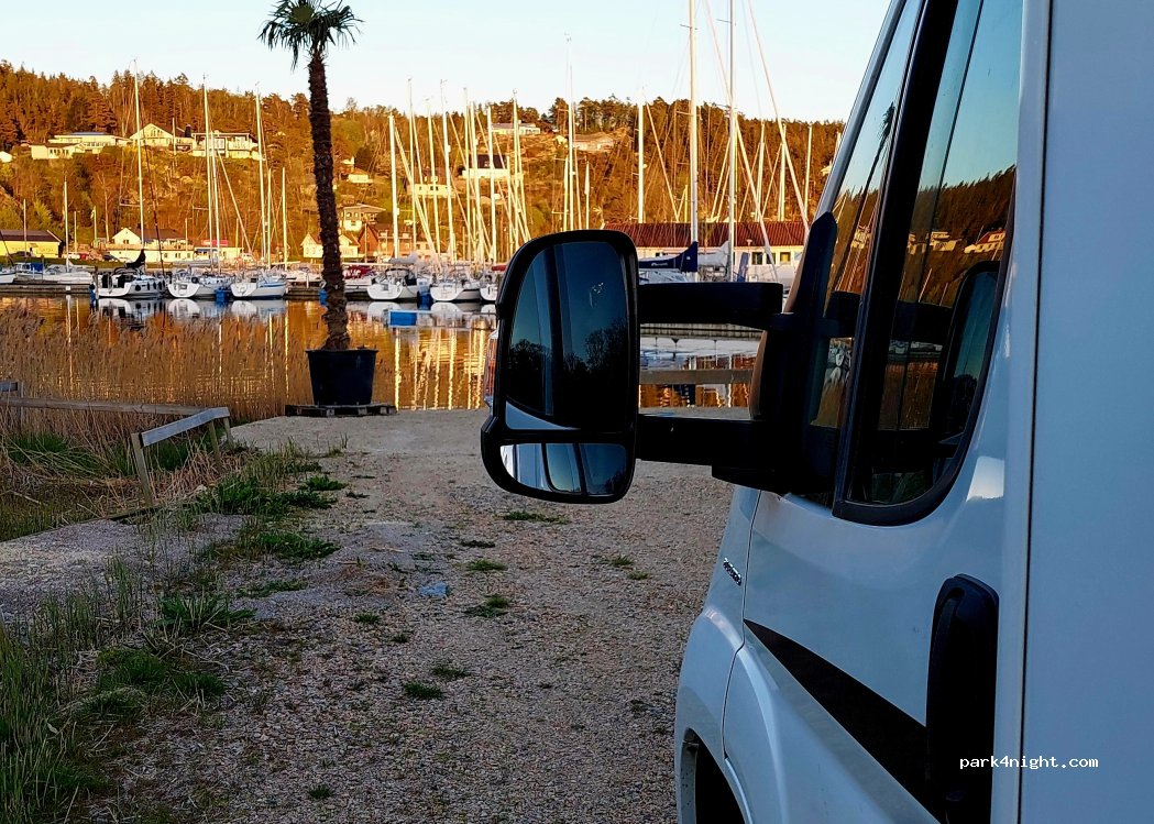 Großer Stellplatz im Yachthafen mit Blick ausschließlich auf die Boote, nicht auf den Fjord. Man findet immer einen Platz,Servicehaus gut durchdacht und sehr sauber. Jede unserer Bewegungen wurde von den schwedischen und norwegischen Rentnern genauestens beobachtet. Am Abend wurden wir sehr unfreundlich vom Kontrolleur behandelt, der unser gut sichtbar angebrachtes Ticket nicht gefunden hatte…