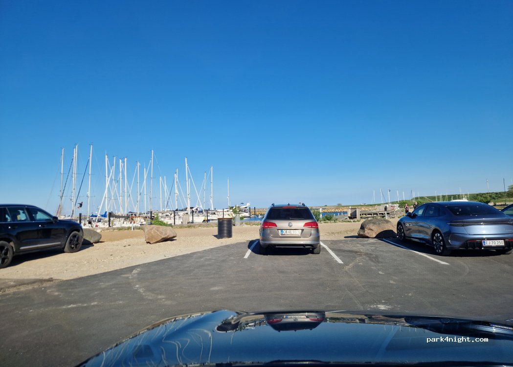 Area Camper della marina, sulla parte posteriore del deposito barche, quindi distante dal mare. Piazzale su ghiaia; esiste una zona erbosa sulla sinistra, la le colonnine non erogano corrente, ed al mattino è più vicino ai lavori in corso sulla strada. Costo 164DK, carico e scarico compresi, elettricità extra. Blocco servizi con docce a circa 200m, vicino alla macchinetta per pagare. Viene emessa una tessera, su cauzione, che va restituita prima di partire chiedendo il rimborso "refund" del platfond non usato.