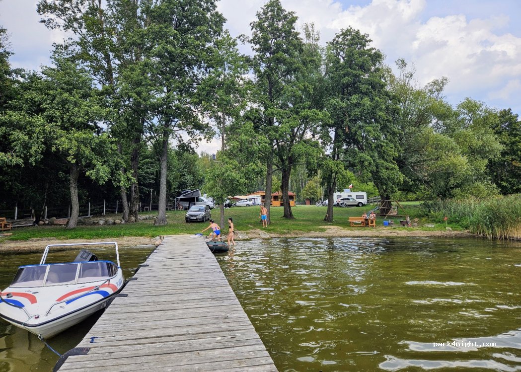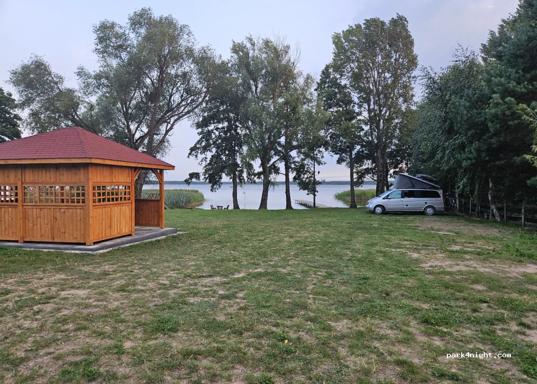 Zufahrt sehr holprig. Stellplätze sind eher nicht so schön, da alles in einer reihe und wenig Platz falls es voll sein sollte. War es im Juli aber nicht. Bzw. alle Fahrzeuge sind weiter bis zur Spitze der Halbinsel gefahren, um dort "frei zu stehen" Zugang zum See mit Steg. Wasser nicht trinkbar. Aber Toilette und Dusche. Hunde erlaubt 100Zloty für 2 Pers. im Minicamper(Auto), ziemlich teuer