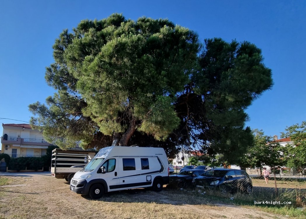 Parcheggio libero, a fianco di parcheggio privato, con un paio di posti ombreggiati da un grosso pino. Abbiamo passato una notte tranquilla.