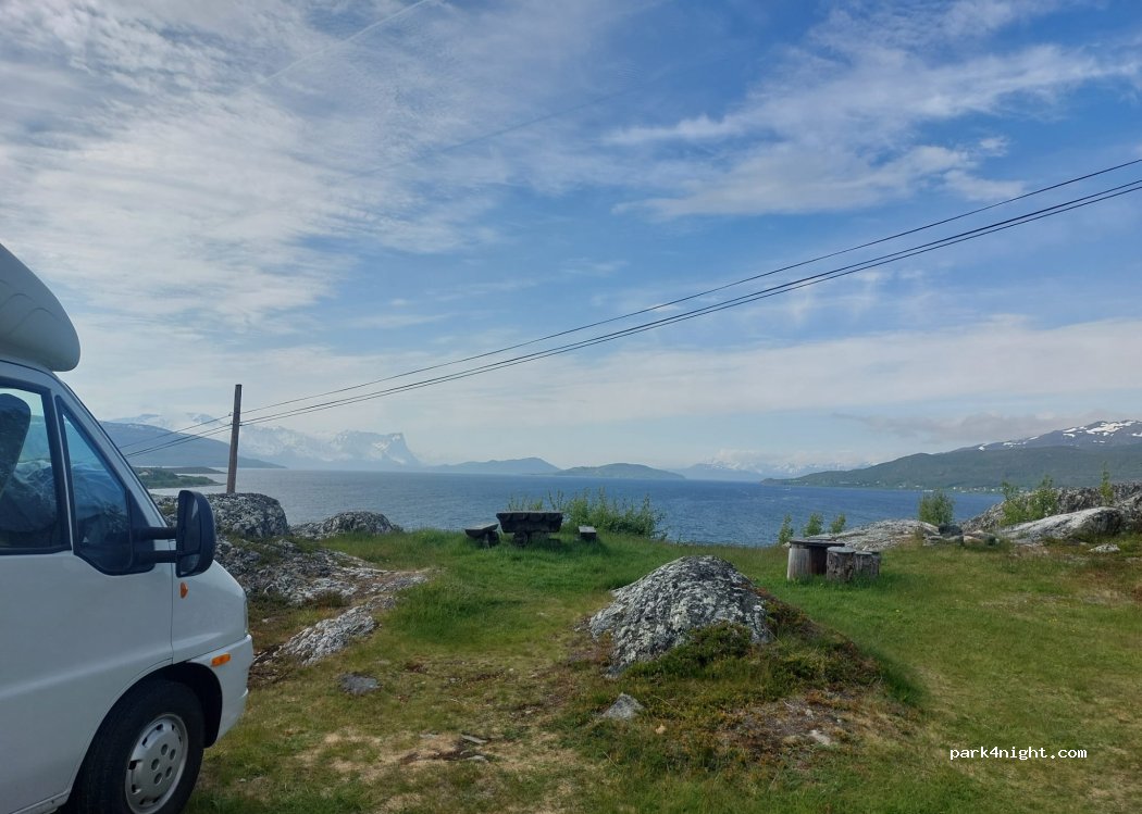 Superschöner Platz oberhalb der E6 mit tollem Blick auf den Fjord. Einfach genial um die Mitternachtssonne zu genießen. Autolärm für uns nicht relevant, da am Sonntagabend kaum Verkehr. Sanitäranlagen älter, aber sauber und mit heissen Duschen. Küche, Waschmaschine oder Gemeinschaftsraum habe wir nicht genutzt, ist aber alles da. Für 28 Euro eine Nacht alles inklusive - passt.