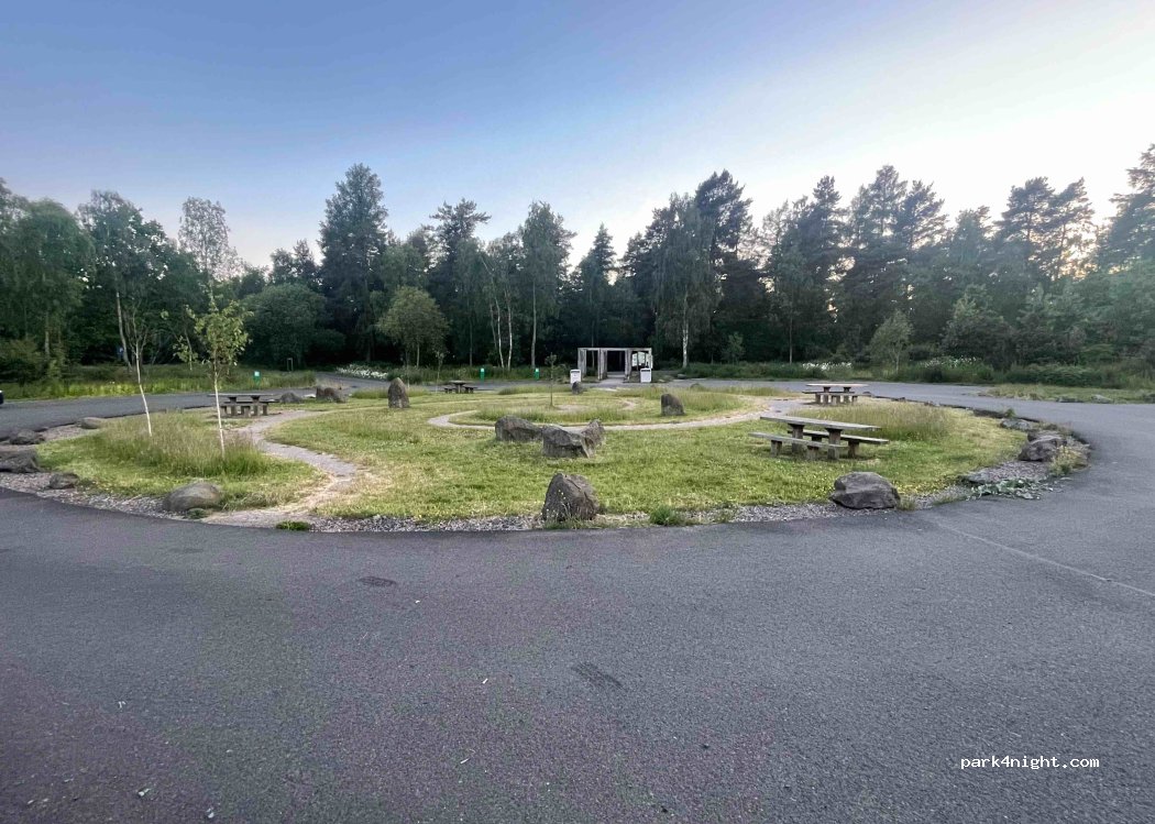 Great spot to park overnight. Large parking, many spaces. Green area around, some distance from main road - quiet and safe.