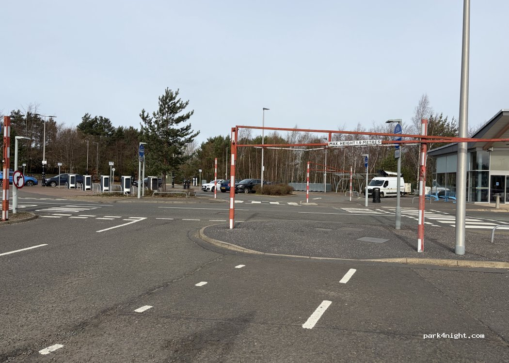Good wee stopover for the night. Wasn’t too noisy, just some road noise but expected at a park and ride. Height barriers are open, the exit barrier looks damaged so won’t be closed in a hurry. Perfect stop for Oriam parkrun which is just around the corner