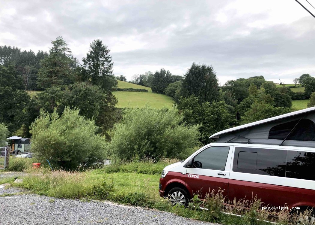 One of the best campsites I have been to. over 18's only. wonderful shower and toilets, nice kitchen area and a place to dry things. had a horse box bar and just had such a a lovely feel. only 2 small campervan spots (6m max) and we were in a MWB master and I probably wouldn't try to bring anything bigger. the owner, Bob was friendly as anything.