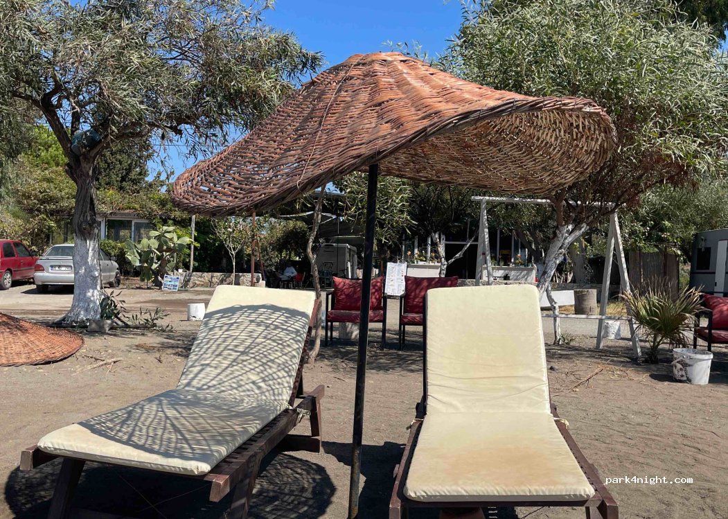 Petit camping ombragé par des toiles. Le propriétaire et le personnel sont agréables et sympathiques. accès sur la plage avec transats. plage moyenne et beaucoup de vent. Mais le camping est abrité. Tout est propre mais les sanitaires auraient vraiment besoin d'être rénovés. Nous avons payé 1500 tl pour 1 van 2 personnes sans électricité