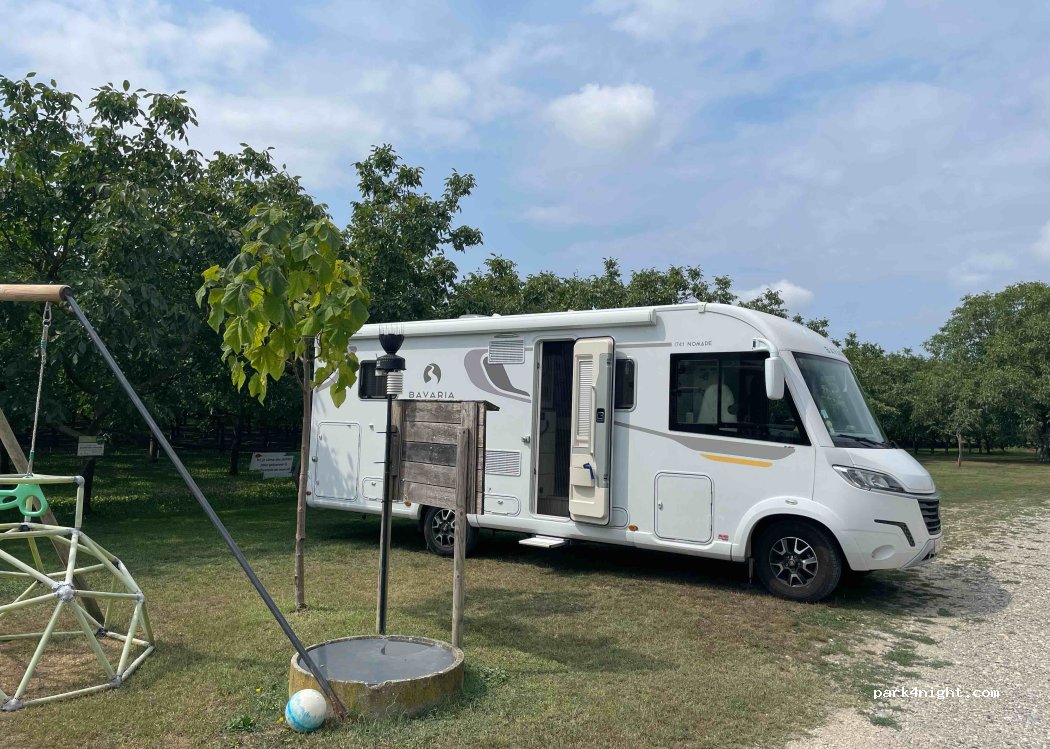 Accueil chaleureux au cœur d’une belle ferme nucicole bio. On peut y faire une provision de calme et de produits délicieux a base de noix . L’emplacement herbeux réservé aux vans se situe en bordure du champ et à proximité de l’atelier. Nous recommandons sans hésiter !!!