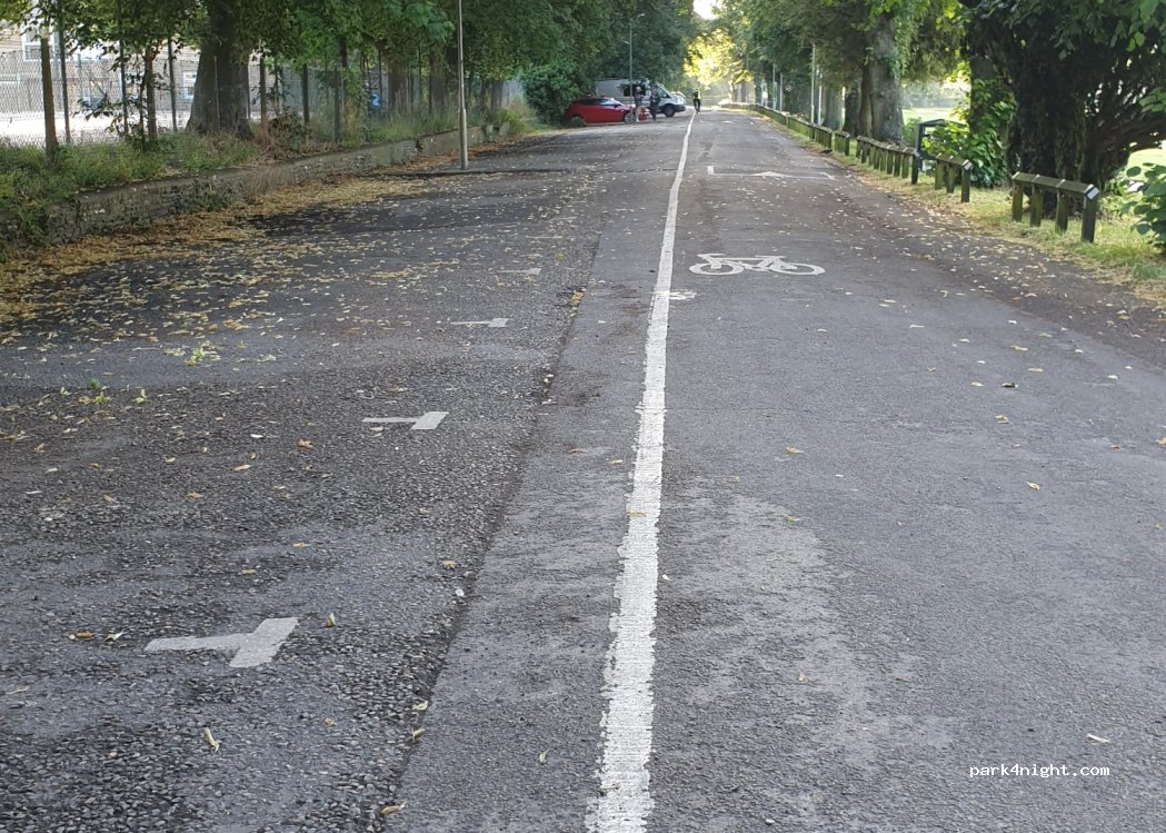 Couldn’t fit in the car park in our 7.4m van. Parked out on the road next to the park, quite a lot of passing traffic in the evening but quiet at night. Pretty level & convenient as right next to Sainsburys (accessible via a short footpath) and the park was perfect to walk our dog. Good 4G on EE.