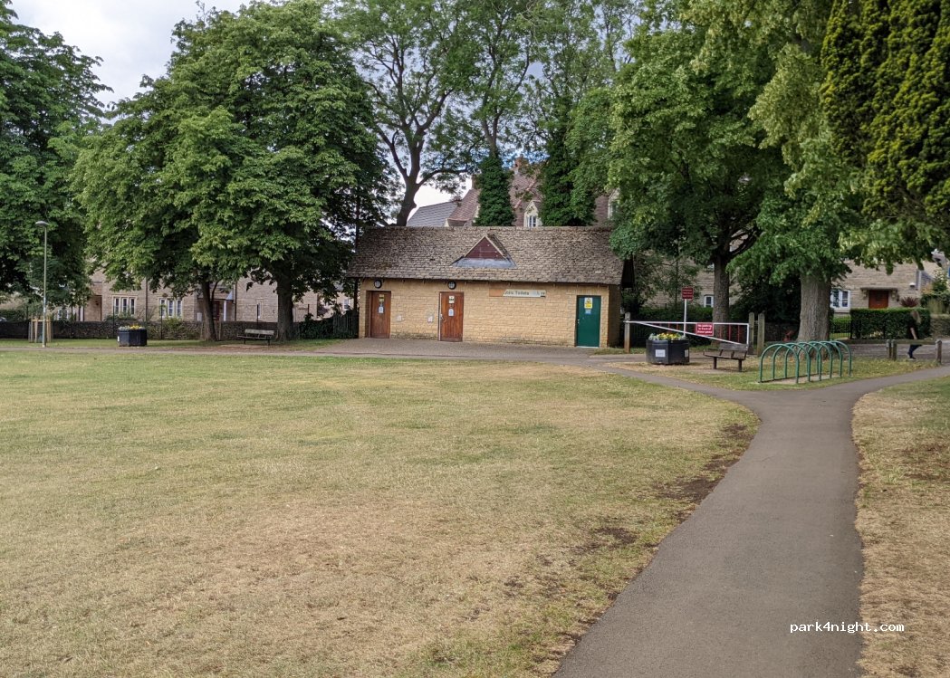 One of the few good places to park in the Cotswolds. Under the trees, free, flat, bins nearby. Many free bathrooms: Sainsbury supermarket next door, 5 min walk on lovely path to Macdonalds open 6am-11pm everyday, 5 min walk to Wetherspoons pub in nice village centre. Stayed here many quiet nights and no issue - friendly locals, always another van nearby. Avoid when lawn is used for music events.