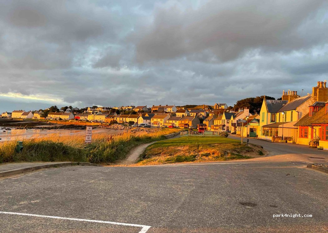 What a little gem of a place. stopped here for one night. Parked up and we were literally right on the beach, nice flat car park. Donation box in the middle car park. Felt very safe and welcome. Public toilets were open and very clean. little shop to get any essentials. The local pub was closed though. shut on a Monday and Tuesday.