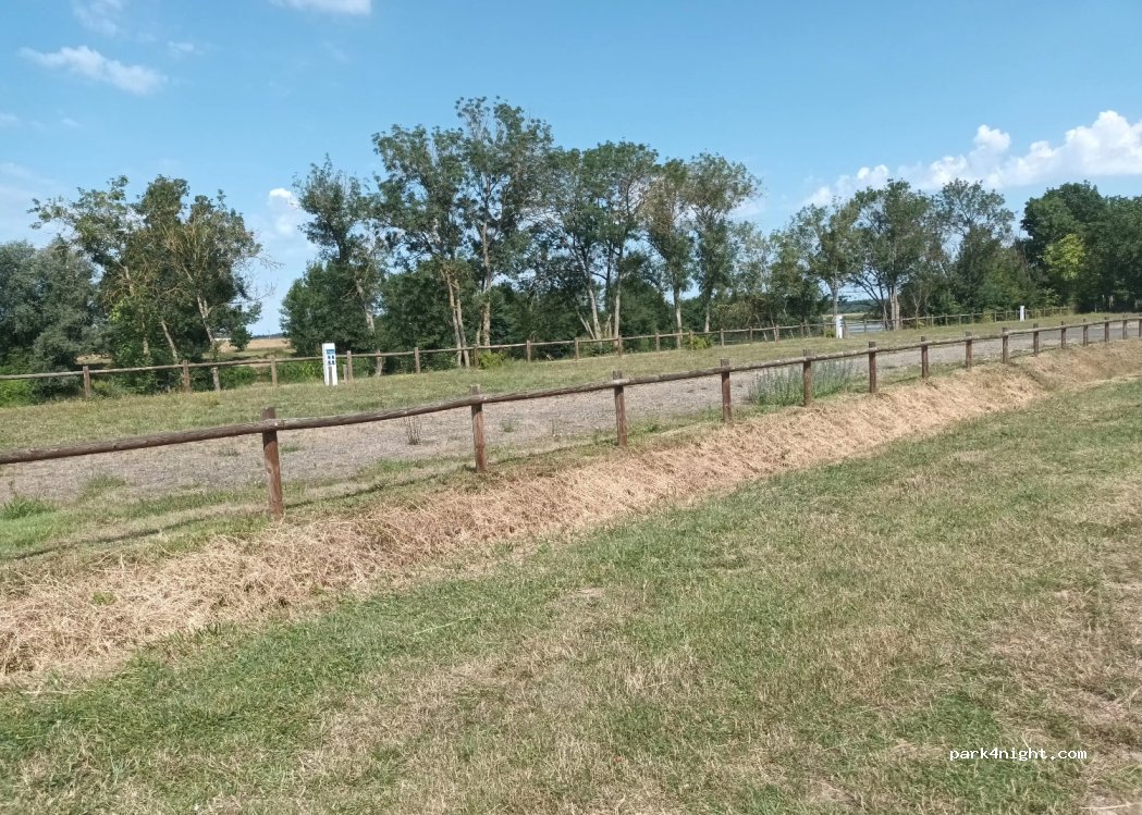 Bel emplacement stabilisé. Vue sur le Cher. Calme près du village et piste cyclable..Borne hs barrière hs . Électricité gratuite… merci pour cette belle nuit calme.