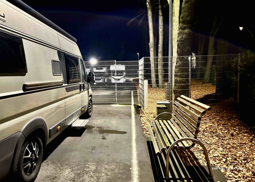 Free parking space also suitable for long campers. tar and straight. In front of the gate to Reisemobile Brüggemann on the side of the shop entrance. Always accessible and free electricity. Busy during the day as it is in a mini-industrial area, quiet at night. Gas bottles available during shop opening. Quieter location than directly at the parking space on the street with disposal.