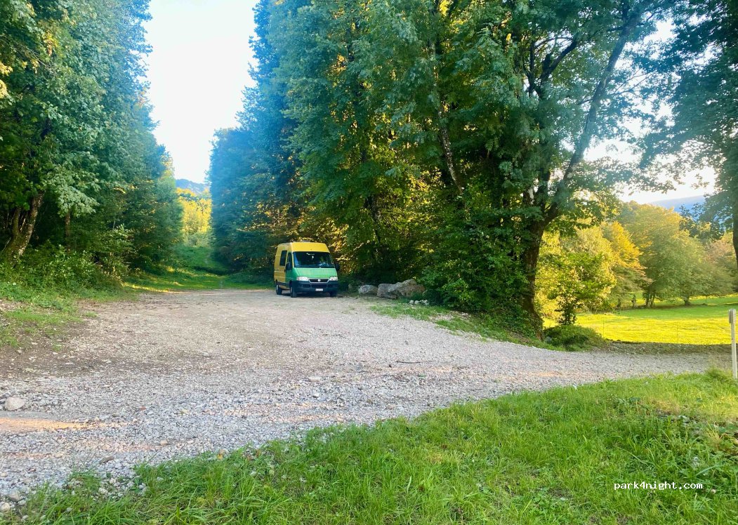 Stationnement gratuit en plein air, à peine difficile d'accès mais c'est dont il faut pour bénéficier de tranquillité éloignés des autres airs de parkings autour du Lac. Au départ d'une multitude de sentiers. Restez toujours silencieux et propres, c'est comme ça que ces endroits de pleine nature sont des perles rares !
