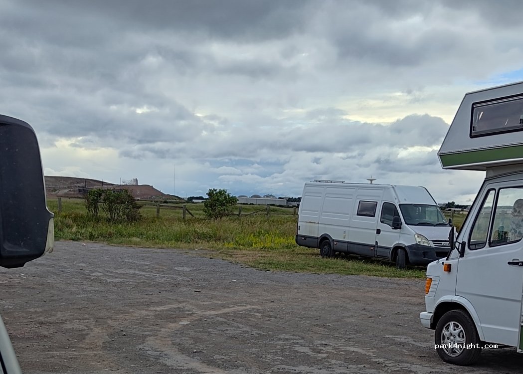 Just a car park that's locked for the night. The smell through the local waste facility comes through. Walk to the beach through a golf course is an adventure