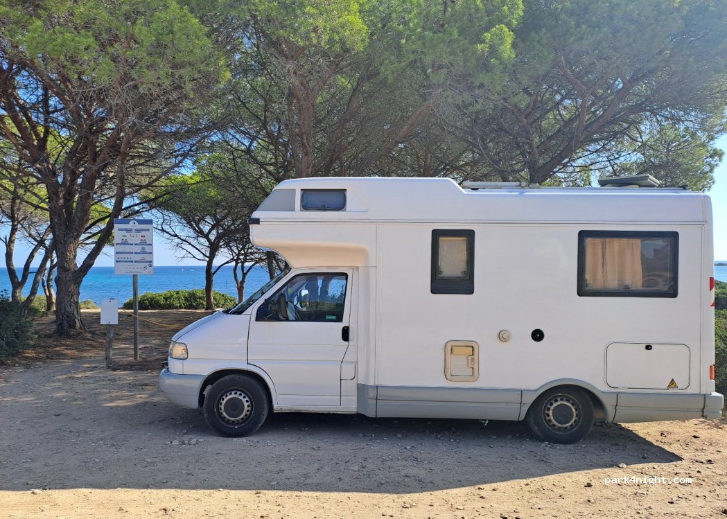 Traumspot mit Meerblick Ruhiger Parkplatz, 40 m vom Strand – durch einen offenen Pinienwald direkter Blick aufs Meer. Stehen im Camper erlaubt, Campen (Stühle, Feuer etc.) nicht. Nebenan ein tolles Café mit fairen Preisen. Perfekt für Spaziergänge & Radtouren. Ich bleibe zwei Nächte – sehr zu empfehlen!