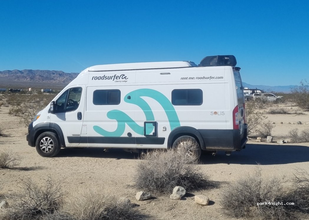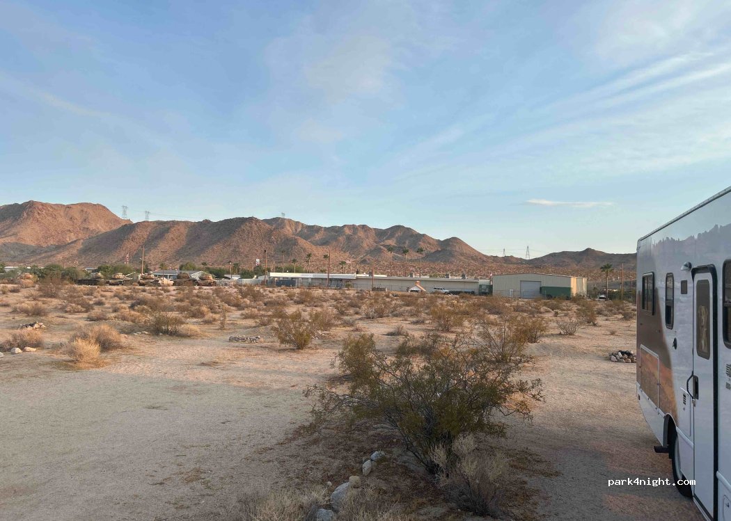 I am honestly so surprised by this place. I found it by accident by arriving at a chevron to fill up. At the gas station I realized that the mini “strip mall” that consisted of a cute cafe, a food mart and a Mimi museum was an unincorporated community and had a dry campsite just being the travel stop. It is well marked and well maintained. It’s in the desert looking out to the mountains and absolutely beautiful and FREE!! This place is such a hidden gem. Not only is it so close to the high way and a travel stop but it feels secluded while also having 5G access 10/10 great place to stop for the night. Called chiriaco summit