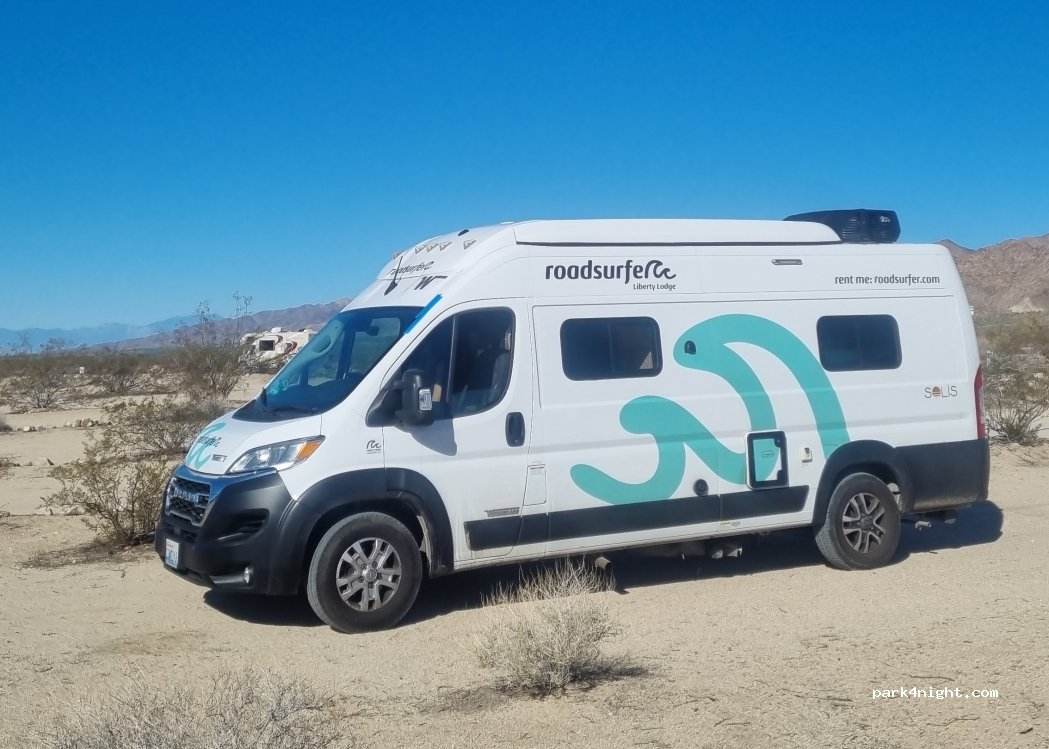 Ich bin ehrlich gesagt so überrascht von diesem Ort. Ich fand es zufällig, als ich an einem Chevron ankam, um aufzufüllen. An der Tankstelle wurde mir klar, dass die kleine „Strip Mall“, die aus einem niedlichen Café, einem Lebensmittelmarkt und einem Mimi-Museum bestand, eine nicht rechtsfähige Gemeinde war und einen trockenen Campingplatz hatte, der nur der Reisestopp war. Es ist gut markiert und gut gepflegt. Es liegt in der Wüste mit Blick auf die Berge und ist absolut wunderschön und KOSTENLOS!! Dieser Ort ist so ein verstecktes Juwel. Es ist nicht nur so nah an der Autobahn und einem Reisestopp, sondern es fühlt sich auch abgelegen an und hat gleichzeitig 5G-Zugang 10/10, ein großartiger Ort, um die Nacht zu verbringen. Chiriaco-Gipfel genannt