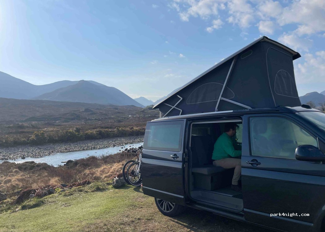 Super accueil ! Beaucoup d’espace, il y a un super pub karaoke juste en face. Dès magnifiques prises de vues avec en fond un coucher de soleil dans les montagnes et le loch. 10£ la nuit vraiment au top. Seul bémol les sanitaires pas très propres… mais bon c’est plus les usages qu’il faut blâmer !