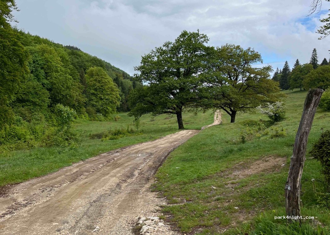 If you don’t want to risk getting stuck in the mud than this road side parking is perfect to stay the night. No traffic at night, and you can still explore the meadow and mountains easily from here. We came in winter so didn’t try driving further as it’s very muddy now.