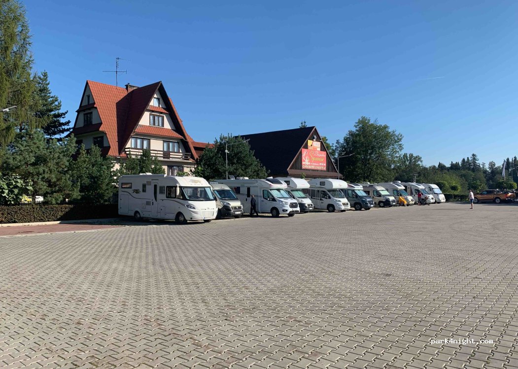 Free parking. Much space for parking campers. There is a bus parking in the front of Chocholowskie Termy. They close barrier at 11pm so you can go inside by another exit gate (don’t look at signs at night). Water source next to main entrance (available 22-7). If you want use toilets, they are inside building of Chocholowskie Termy next to restaurant and they are free. If you want use shower, you need to go on the pools (payment). No black water dump so far.