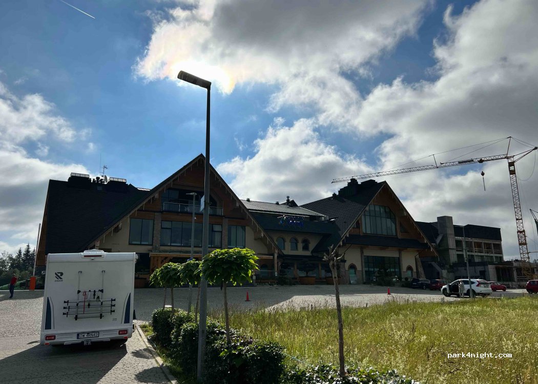 Se garer sur le premier parking de l’Aqua Park pour une nuit sans problèmes, super Aqua Park et visite de Chocholow, pas de service