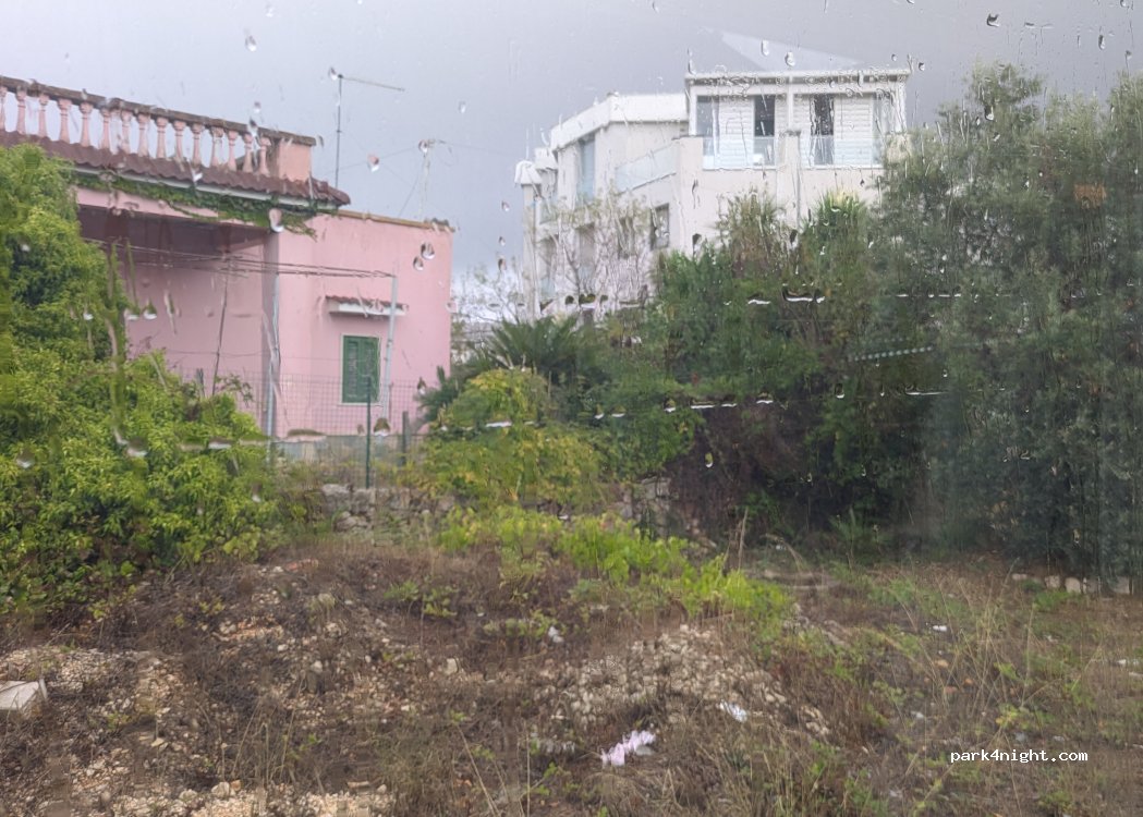 nous y avons passé une nuit très calme au fond du parking. sur un côté un jardin d'oliviers entouré d'un muret, une maison fermée et globalement pas de vis à vis dont le regard tombe sur le parking. la route n'est pas trop bruyante car on est en retrait. un tas de gravas et quelques déchets . parking non boueux malgré une nuit de pluies intenses(2-10-2025).