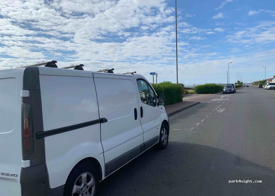 stayed Mon night ,very quiet, good views of the sea.can stay 24hrs then no return for 12 hrs .very long road , plenty of spaces to park