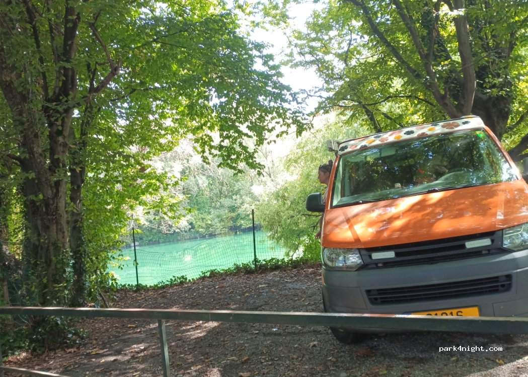 Parkplatz vor einem geschlossenen Restaurant, am Rand einer kleinen Sackgasse mit dem Auto, die aber durch einen Spaziergang entlang des Flusses verlängert werden kann. nebenan ein nautisches Zentrum für Kanu/Kajak und ein Kinderpark. Wir haben tagsüber dort angehalten, um ein Picknick zu machen und vor dem Fluss zu landen. Es ist sicherlich möglich, dort zu schlafen, aber wir hatten keine Gelegenheit, es zu versuchen. sehr ruhiger Ort, die Bewohner sind angenehm und einladend.