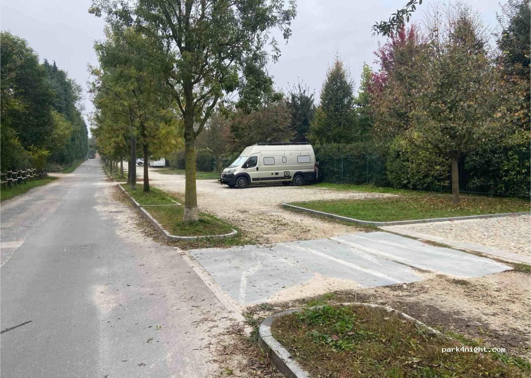 très beau parking avec de l'ombre a côté du lac et pas loin du port et des restaurants nous avons pu passer une nuit au calme merci